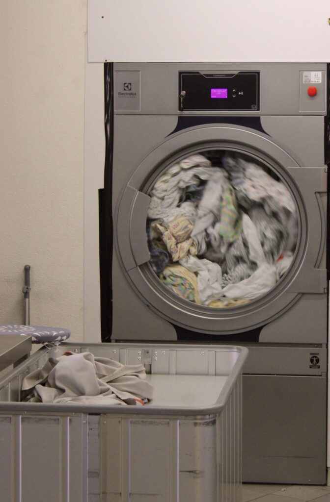 Cette zone est l’endroit où tout le linge est pesé et mis en machine.